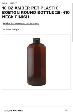 16 Oz Amber Plastic Bottle With Cap $40Los Angeles, CA