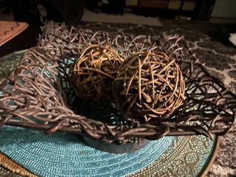 Square Dark Brown Metal /wicker Bowl With Two Wicket Balls $29Seattle, WA