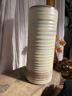 Beautiful Vintage Frankoma Vase ceramic Art Pottery 72 cream /light beige colored with Brown Rings 10.25β tall Cylinder Planter/$49Mountlake Terrace, WA