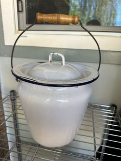Vintage Enamel Ware Chamber Pot Bucket w/ Lid Wood Handle Farmhouse Decor 11”$35Palm Springs, CA