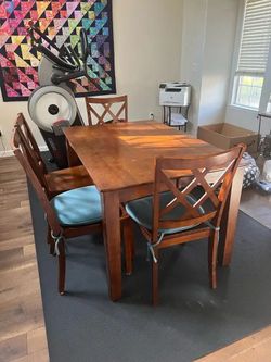 Solid wood dining table (with leaf) and four chairs$450Rancho Cordova, CA