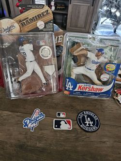 Los Angeles Dodgers Mcfarlane Baseball Figures Clayton Kershaw & Manny Ramirez And 4 Dodgers Patches$95Elk Grove, CA