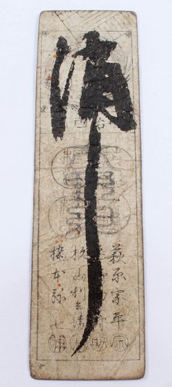 17-1800's Feudal Japan, Edo Period - 5 Silver Monme Hansatsu Clan Note$25Pueblo West, CO