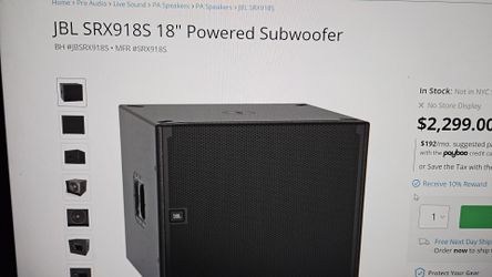 Jbl Srx918s Powered Subwoofer $2,000Brooklyn, NY