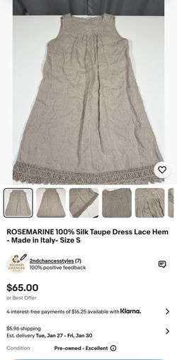 ROSEMARINE 100% Silk Taupe Dress Lace Hem - Made in Italy- Size S$65Palmdale, CA