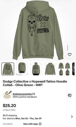 Dodgy Collective x Hopewell Tattoo Hoodie Collab - Olive Green - NWT - Various Sizes$25Palmdale, CA