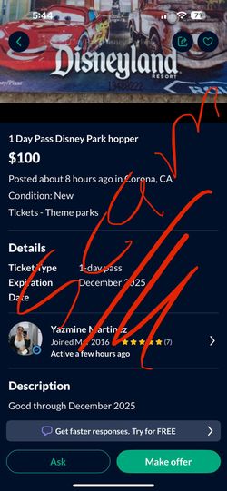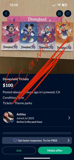 Disneyland Tickets$0Moreno Valley, CA