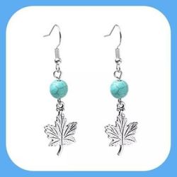 New Pretty Maple ๐ Leaf Turquoise Bead Dangle Earrings$8Eugene, OR