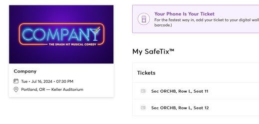 Two Center Aisle Seats For Company, At Keller$170Hillsboro, OR