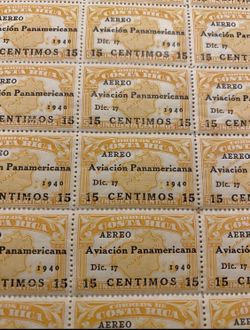 Costa Rica Airmail Stamp, 1940, SC#C55, MNH OG Sheet Of 100, 15c On 50c$1,500Hialeah, FL
