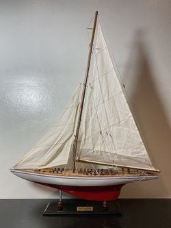 ENDEAVOUR YACHT MODEL Painted Red-White Sailboat Nautical Decor Display$50Miami, FL