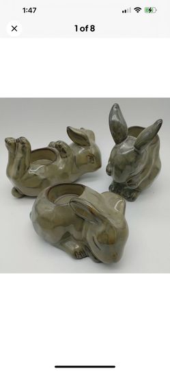 Partylite Bunny Rabbits Tea Light Candle Holders Retired Green Mottle Set Of 3$15Glendora, CA