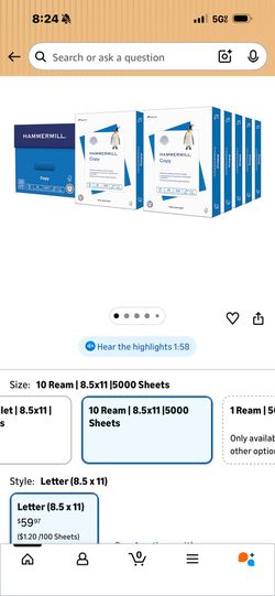 Copy Paper Letter Size Sold Per Box of 10 Reams$29Menifee, CA