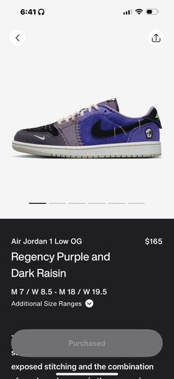 Air Jordan 1 Low OG Regency Purple and Dark Raisin Sz11$180Port Neches, TX
