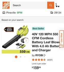 Ryobi Cordless Battery Powered Leaf Power$90Charlotte, NC