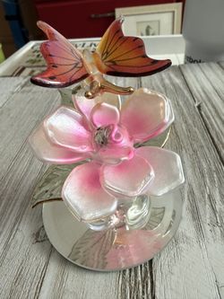 Glass Hand-Crafted Figurine Of Butterfly On Pink Rose with Mirror Base$12Las Vegas, NV