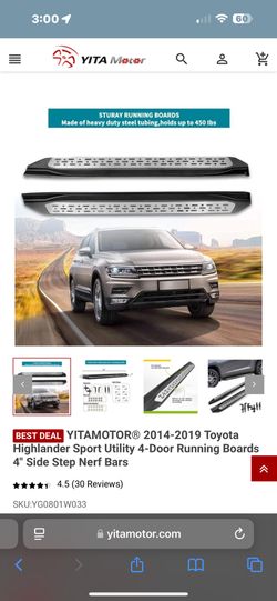 2014-2019 Toyota Highlander Sport Utility 4-Door Running Boards 4" Side Step Nerf Bars$70Edgewood, WA