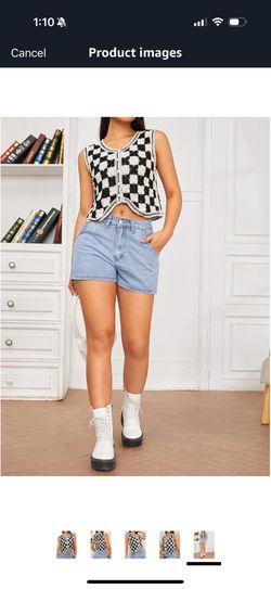 Checkered Front Button V-Neck Sleeveless Crochet Embroidered Knitted Sweater Short Vest Black/White$25Mesa, AZ
