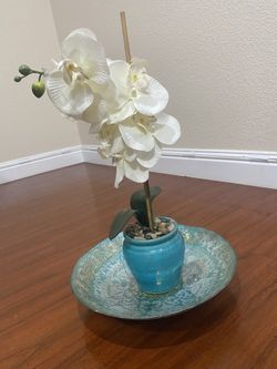 DECORATIVE TWO PIECE SET! Flowers In Pot+ Platter Style Holder $20Sacramento, CA
