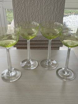 4 green top wine glasses with etching for $20$20Delray Beach, FL