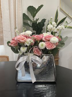 Pink Rose Purse Arrangement $65Artesia, CA