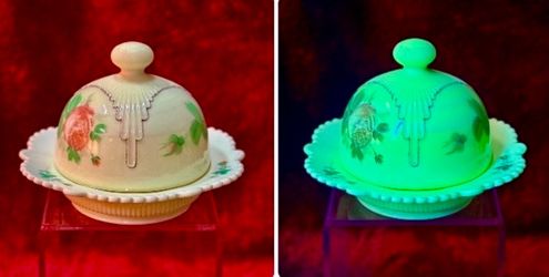 Antique Heisey Beaded Swag Custard Glass Butter Hand Painted Pink Roses 7.5”$63San Diego, CA