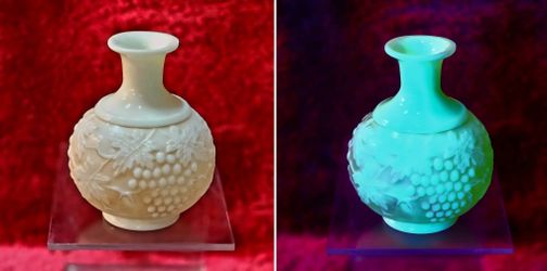 Vintage Imperial Glass Grape Uranium Milk Glass Vase - 1950s Loganberry UV Glow$58San Diego, CA
