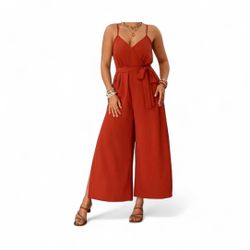 Rust Brown Plus Size Wrap Neck Belted Cami Jumpsuit$25San Antonio, TX