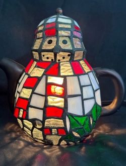 Vintage Tiffany Style Stained Glass Snowman Tea Pot Table Lamp$100Houston, TX