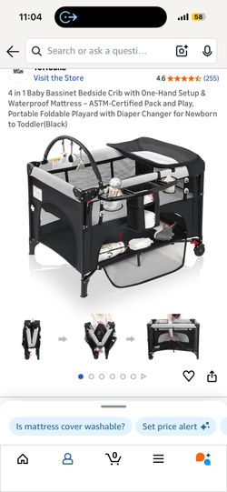 4 in 1 Baby Bassinet Bedside Crib with One-Hand Setup & Waterproof Mattress – ASTM-Certified Pack and$120Chicago, IL