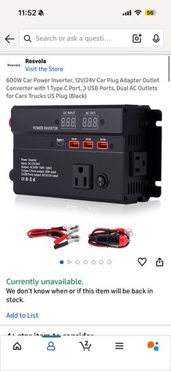 600W Car Power Inverter, 12V/24V Car Plug Adapter Outlet Converter with 1 Type C Port, 3 USB Ports,$45Chicago, IL
