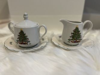 Vtg CUTHBERTSON Original Christmas Tree GREEN TRIM Covered Sugar Bowl & Creamer$30Bellevue, WA