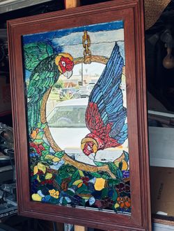Great Gift For The Person Who Has Everything Faux Stained Glass Mirror Parrots On A Swing And Peacock On A Perch$120Rialto, CA