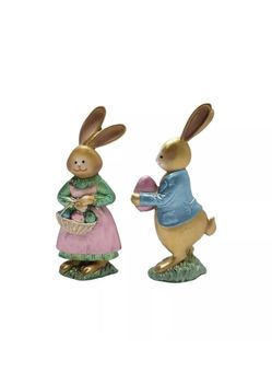 Easter Mr. And Mrs. Easter Bunnies 6" tall Figurines Rabbits Set Of 2 Resin$12Houston, TX