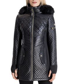 Michael Kors Womens Hooded Quilted Mixed Faux Fur Trim Jacket Coat M Black$150Chicago, IL