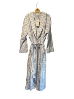 NWT Lanz of Salzburg Womens Flower Blue White Striped Flannel Robe Bathrobe Pajamas Casual p sz S$50Bayport, NY