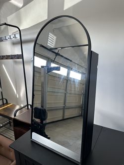 Black Arched Medicine Cabinet with Mirror with Power Outlets.$85Rosemead, CA