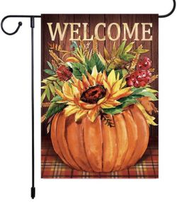 Seasonal Fall Garden Flag Welcome Pumpkin Outdoor Decor Double Sided Autumn Burlap Farm House Yard Banner Flags for Thanking Giving Halloween Holiday $5Pearland, TX