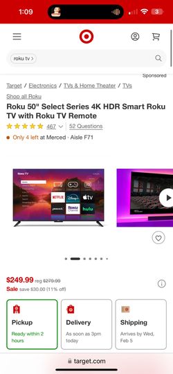 Hisense 4K HDR Smart Roku TV with Roku TV Remote$120Modesto, CA