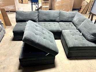 Used Sectional Sofa Couch – L-Shaped Modular Seating with Storage Ottoman, Dark Gray$350North Aurora, IL