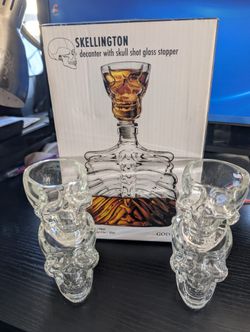 Skeleton Decanter With Shot Glass Topper Plus Shock 4 Shot Glasses$25Riverside, CA