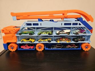 Hot Wheels 22 Car Display Organizer With Portable track Ramp Jump Never Played With$60Oceanside, NY