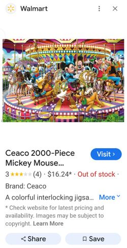 Christmas Gift Ceaco 300 -Piece Mickey Mouse Carousel Interlocking Jigsaw Puzzle$15Kirkland, WA