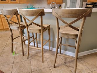 3 Distressed Wooden X Back Bar Height Barstools$150Winchester, CA
