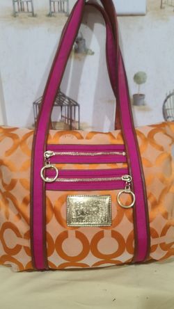 COACH WOMEN'S TOTE PATCHWORK ORANGE WITH PINK STRAP HANDBAG $80Sugar Land, TX