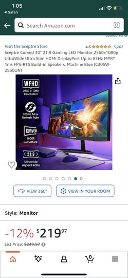 Sceptre Curved 30" 21:9 Gaming LED Monitor 2560x1080p UltraWide Ultra Slim HDMI DisplayPort Up to 85Hz MPRT 1ms FPS-RTS Build-in Speakers, Machine Blu$300Miami, FL