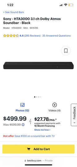 Sony - HTA3000 3.1 ch Dolby Atmos Soundbar - Black$250Miami, FL