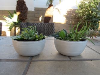 Pair Of Light Gray & Gray Rim Garden Pots With Succulents$10Fountain Valley, CA