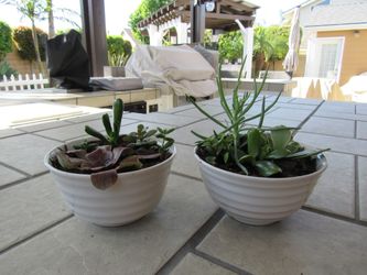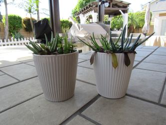 Pair Of Beige Ceramic Garden Pots With Succulents $10Huntington Beach, CA