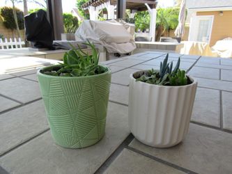 Set Of Light Green Print & White Print Garden Pots With Succulents $10Huntington Beach, CA